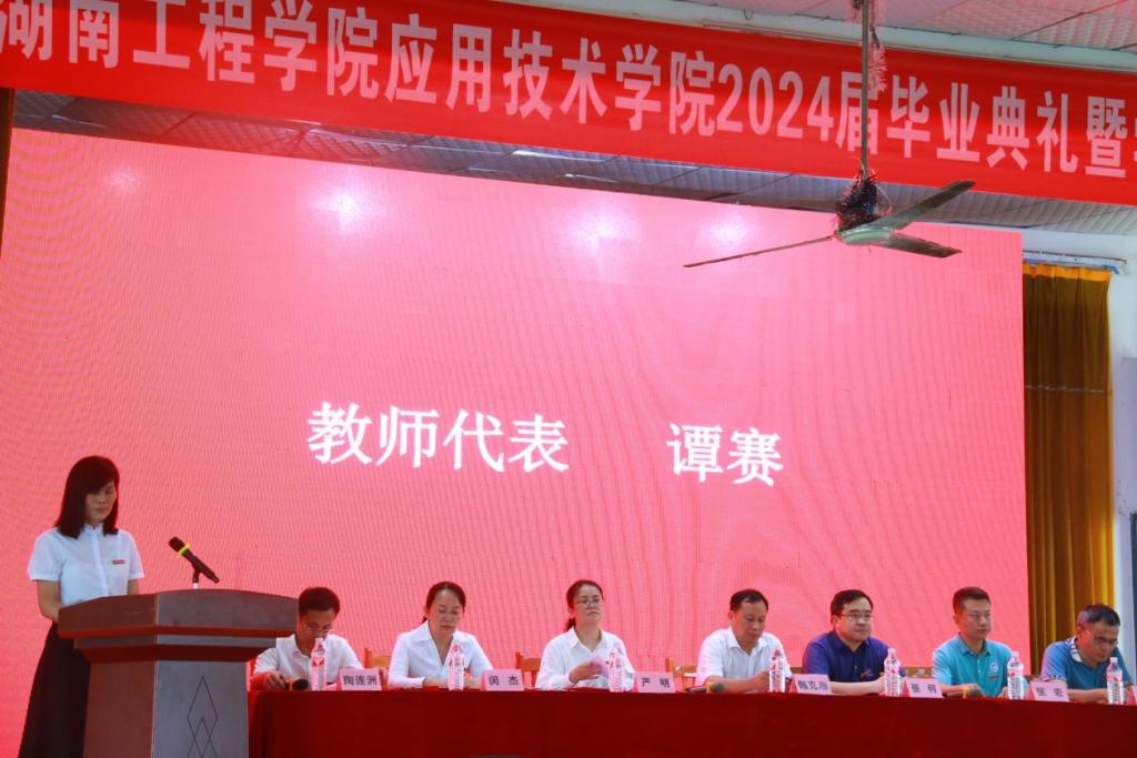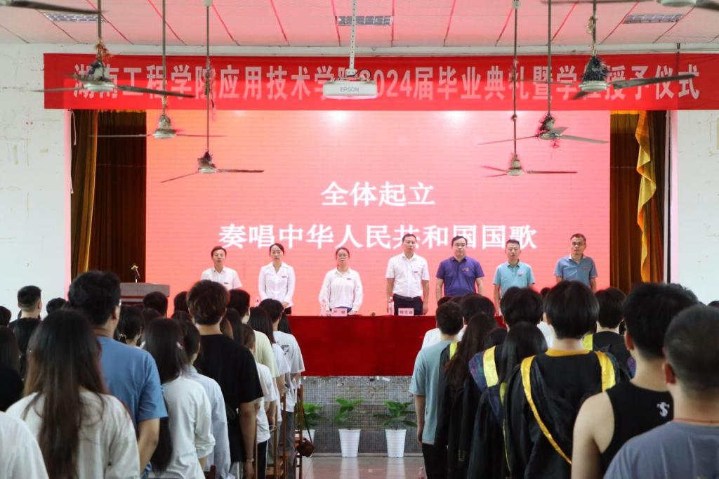 青春不散场,扬帆再启航。6月18日下午,威廉希尔官网2024届本科生毕业典礼暨学位授予仪式在南校区一教学楼四楼学生活动中心隆重举行。湖南工程威廉希尔官网党委委员、副校长魏克湘,湖南工程威廉希尔官网校友联络中心主任张宏,威廉希尔官网党委副书记、院长张何,党委书记严明,威廉希尔官网副院长闵杰、陈晓,以及全体辅导员、班主任老师们出席典礼,2024届毕业生代表260多人参加毕业典礼。毕业典礼由威廉希尔官网党委副书记陶连洲主持。