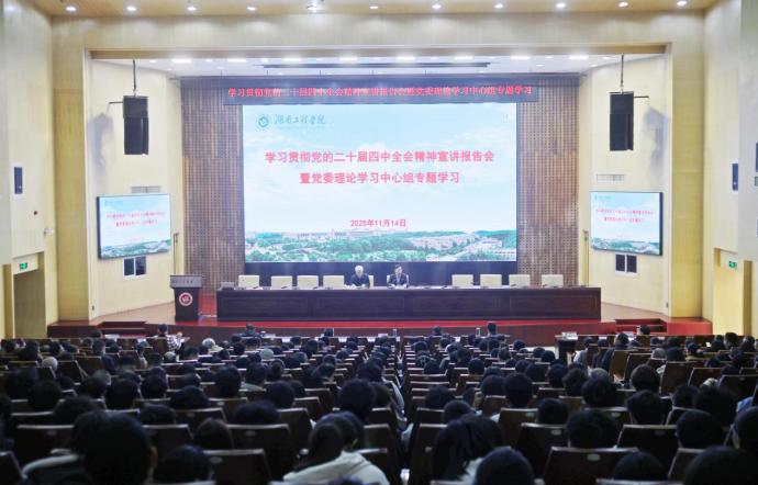 11月14日上午,学校在一报告厅举行“卓越大讲堂”之学习贯彻党的二十届四中全会精神宣讲报告会,校党委书记黄昕主持学习。我院党委理论学习中心组成员和全体辅导员参加,完成2025年第十一次集中学习。