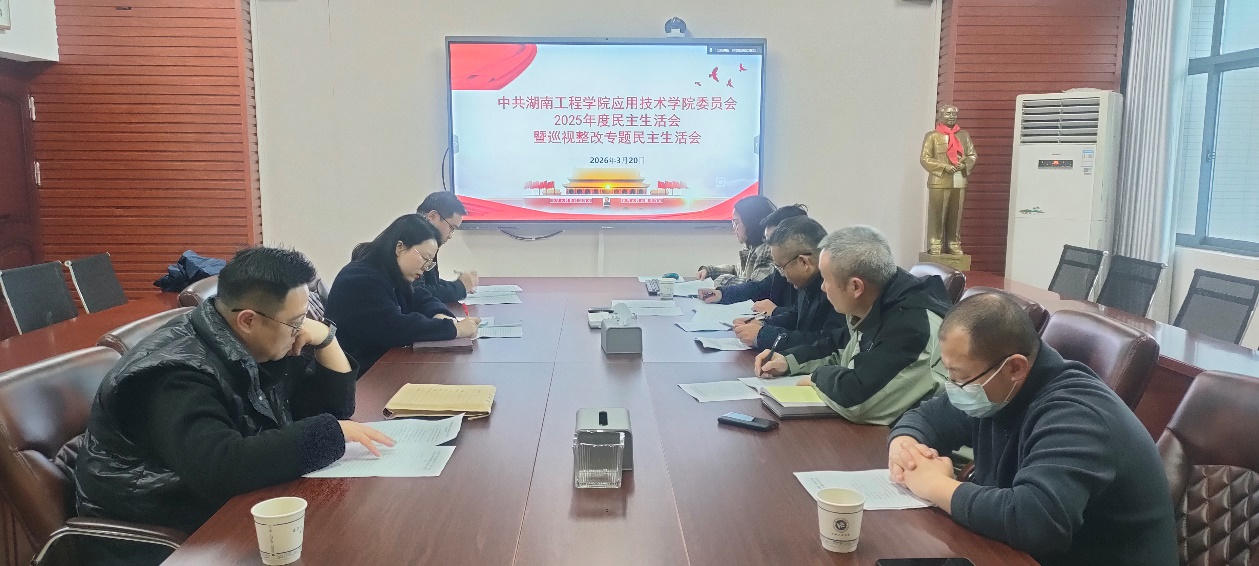 3月20日下午,威廉希尔官网2025年度民主生活会暨巡视整改专题民主生活会在机械楼311会议室召开。校党委委员、副校长魏克湘?(线上)、纪委办陈璟轩到会督导。威廉希尔官网党委书记严明主持会议,院党委班子全体成员参会、非党员中层干部列席会议。