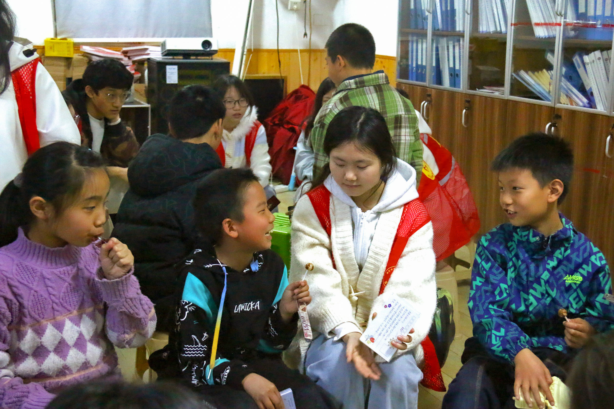活动现场,身着"爱心传递 情满莲城"红色背心的志愿者们,用通俗易懂的方式讲解语数外等学科知识,给孩子们开展课业辅导。课间还设计了团队闯关、益智问答等趣味游戏,让孩子们在轻松氛围中放松身心、增进友谊。一对一辅导区里,志愿者俯身倾听、耐心讲解,分享学习经验和成长故事,鼓励孩子们树立信心。现场温情满满。